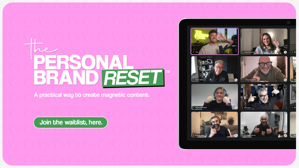 The Personal Brand Reset™ is a 4-week cohort designed to help small business owners build authority and attract the right clients through video-led personal branding, without becoming an influencer.